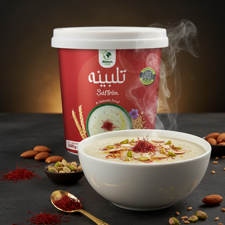 Nature's Basket Saffron Talbina is a nourishing concoction designed to provide you with a myriad of health benefits. Made from the finest organic ingredients, including high-quality saffron, this traditional recipe is a treasure trove of wellness.